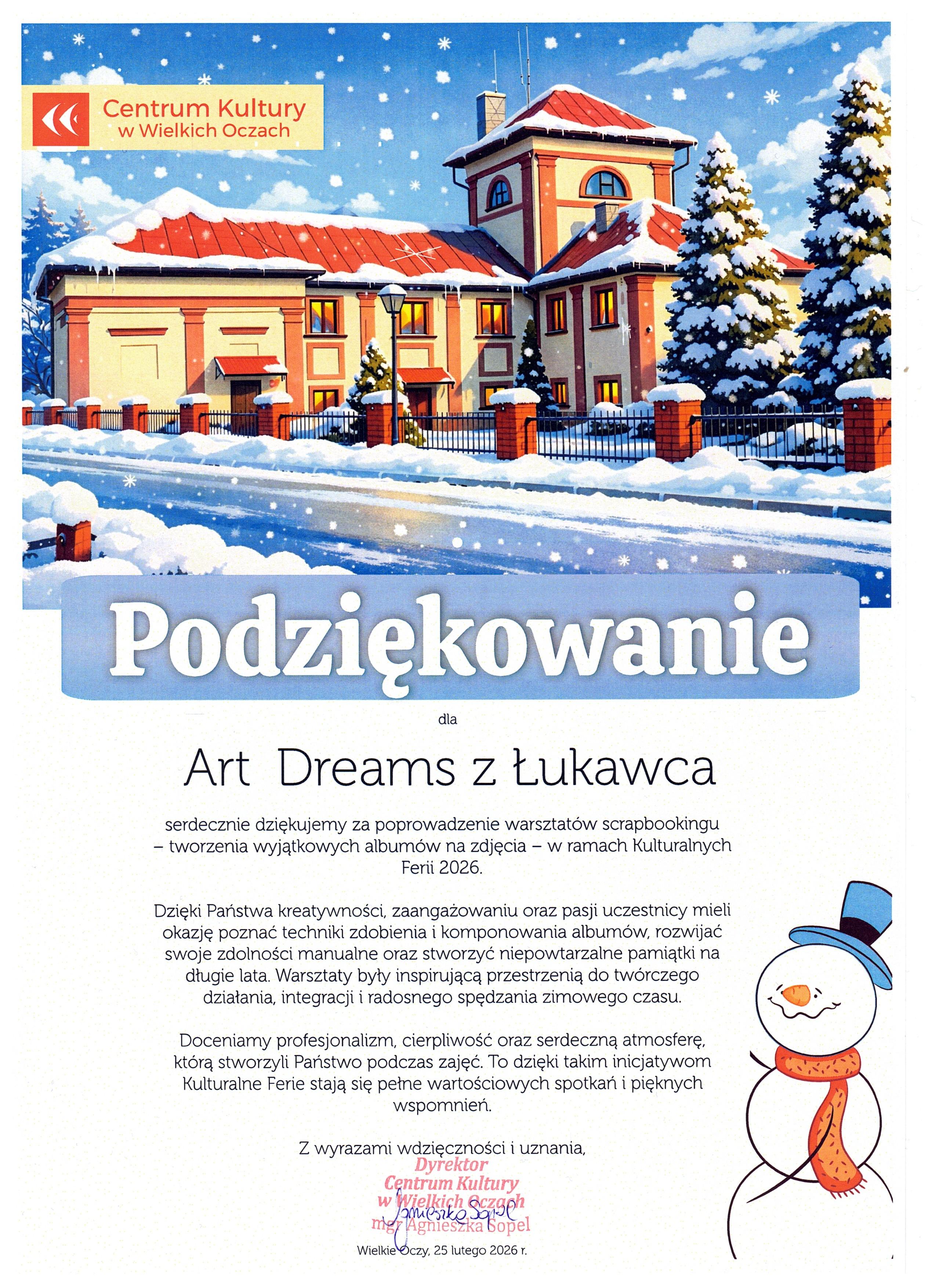 Dzięki uprzejmości Pani Dyrektor Centrum Kultury w Wielkich Oczach zorganizowaliśmy dla młodych twórców warsztaty scrapbookingowe!